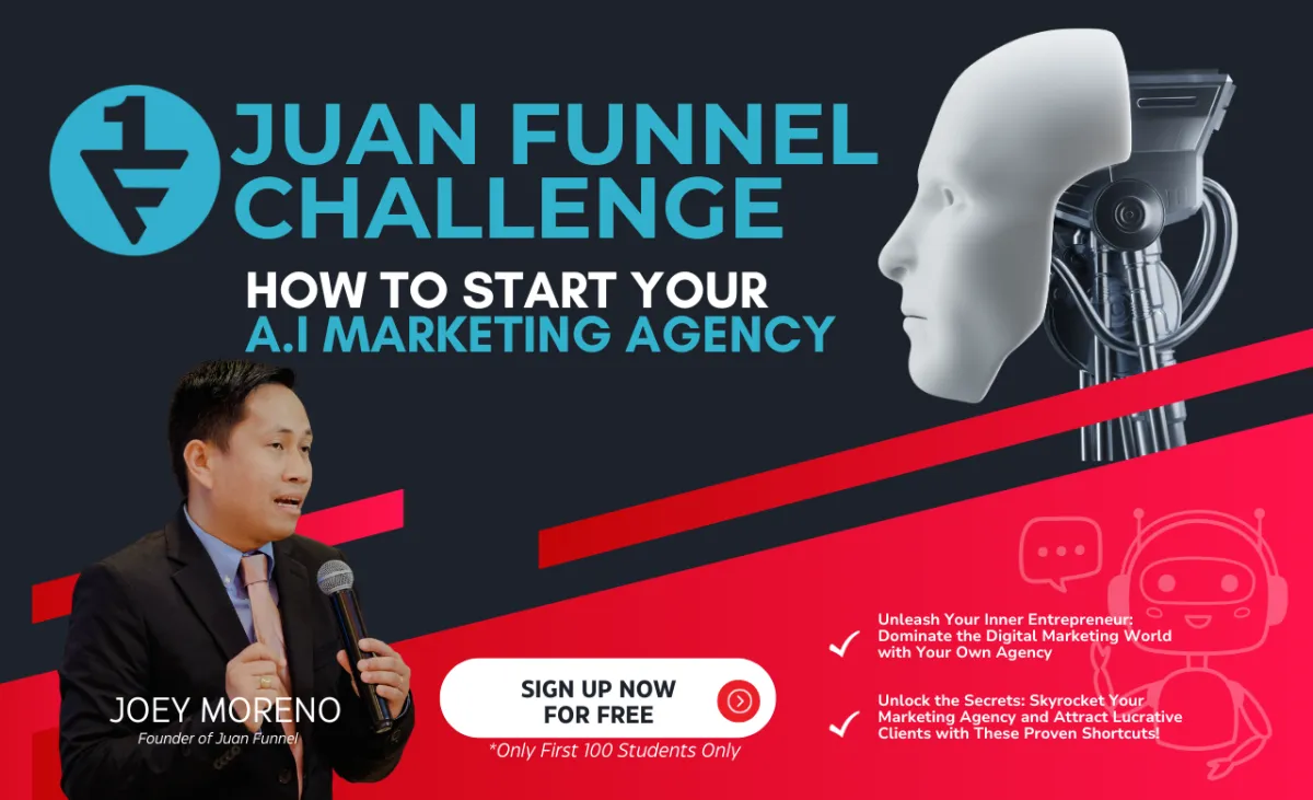 By completing the Juan Funnel Challenge, you'll have the foundation needed to launch your very own marketing agency. With your newfound expertise in social media management and website creation powered by A.I., you can tap into a rapidly-growing market and offer high-demand services that can generate substantial income.